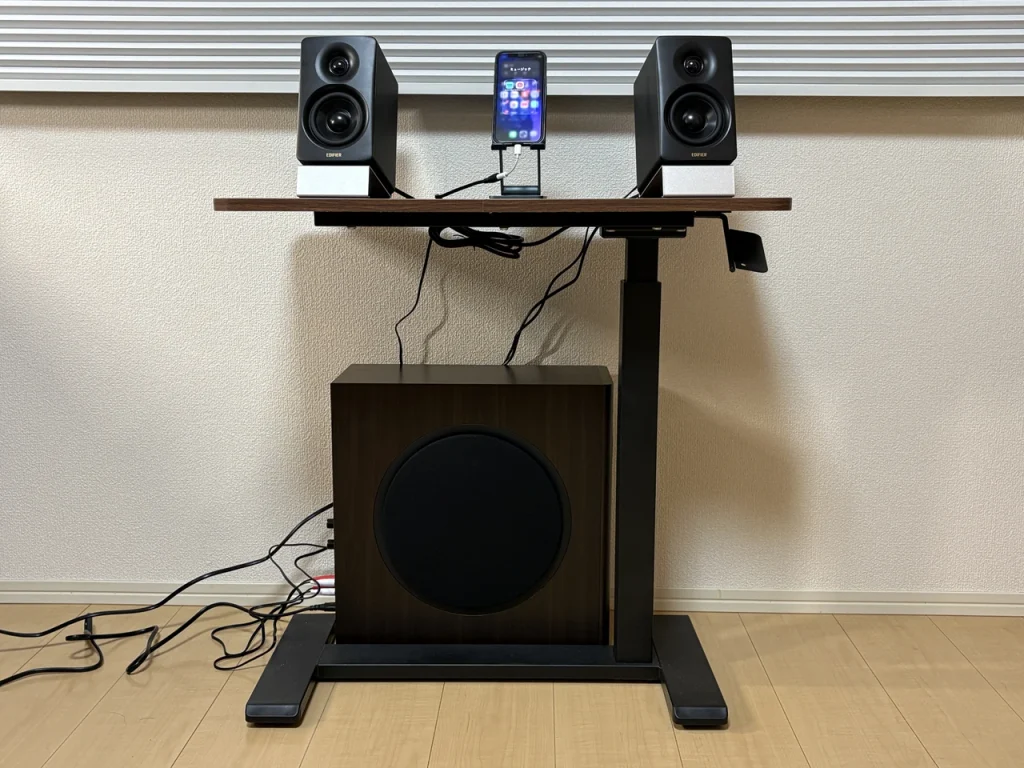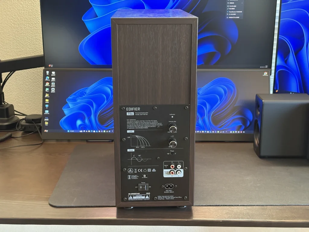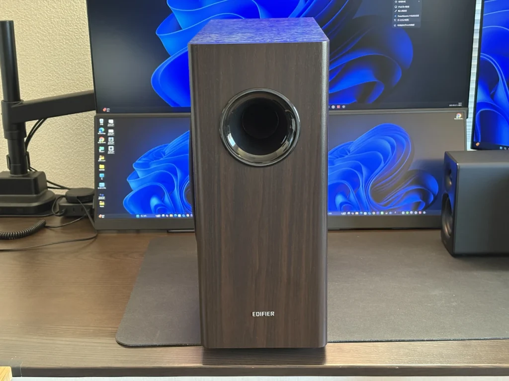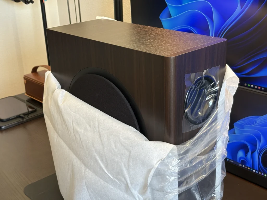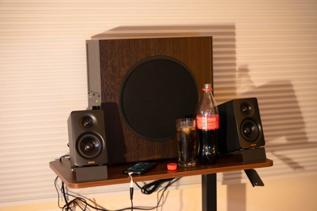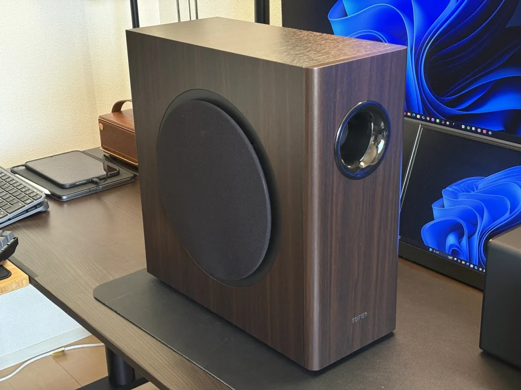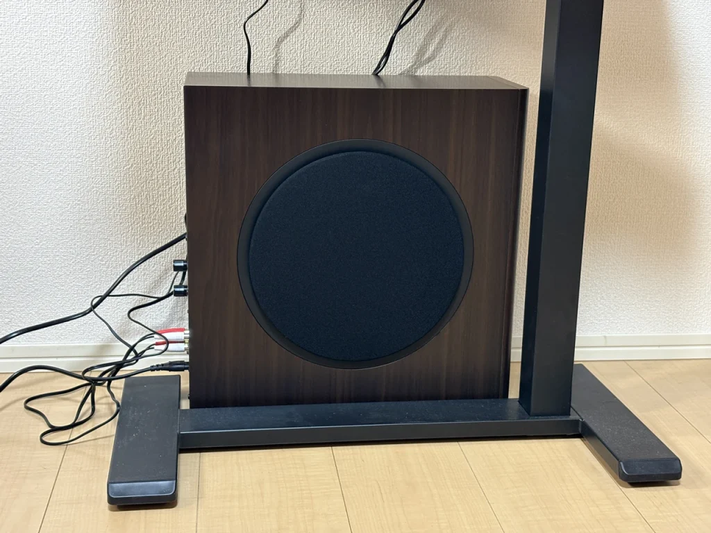 本当はデスクに設置して使いたかったのですが、ウーファーがデカいのでレビューを終えた今も設置場所に悩んでいます。