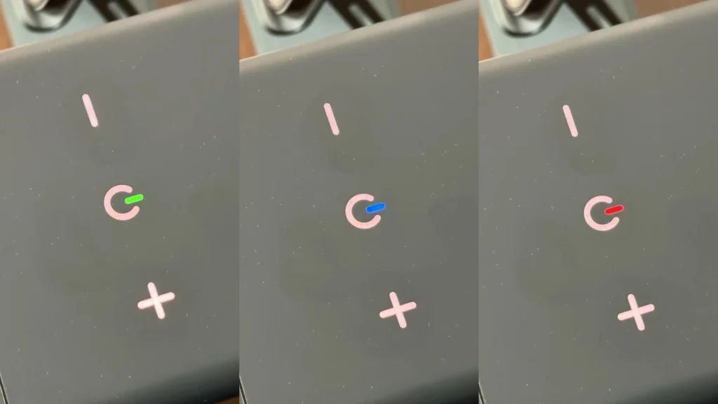 M60はR(メイン)側の上部に手をかざすと電源と音量調節ボタンがLEDで出現します。