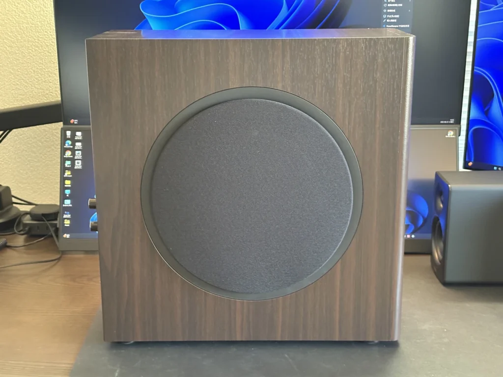 正直「単独のウーファー」というものが初体験だったので、低音の良し悪しはわからず、心地いいとしか言えません。出力も最大まで使うこともない(近所迷惑になるので数秒の検証しかできなかったくらい)なので、評価で言えば120点です