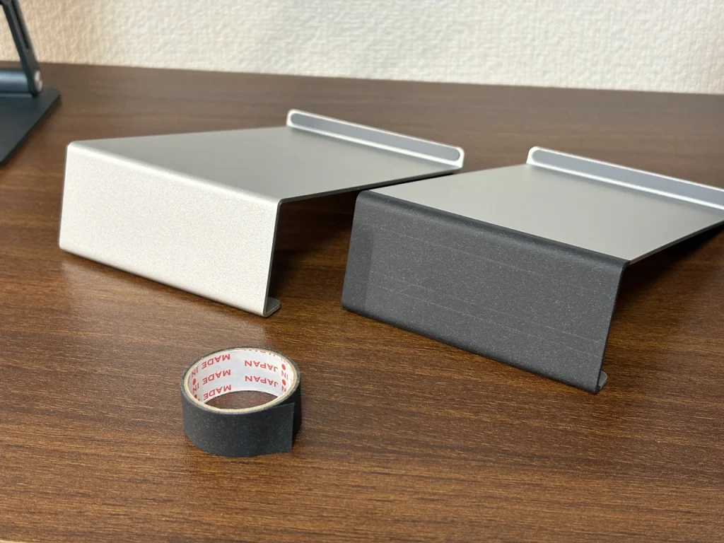 スピーカー本体に角度をつけることができるスタンドが付属しているのは嬉しいのですが、どの色のM60を選んでもスタンドはシルバー(無塗装アルミ)となります。個人的には見た目がかなりアンバランスだと思います。