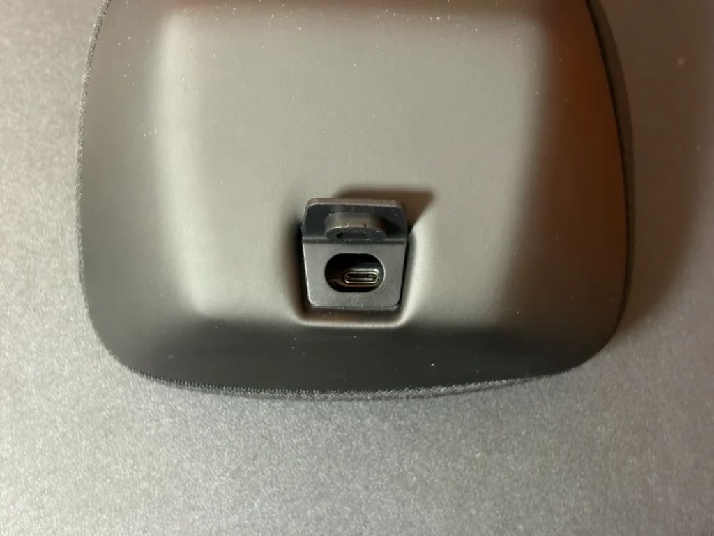 Type-C端子の横にはスリットがありますが、これはケーブルが抜けづらくするためのパーツをつける部分だと思います。そのパーツは付属していませんでした。