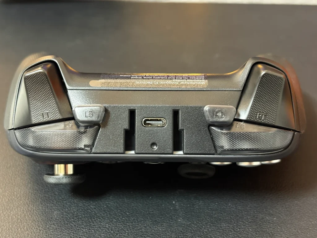 上部はLB・RBボタン、LT・RTトリガー、L5・R5の追加ボタンがあります。Type-Cの端子からは有線での接続と充電ができます。