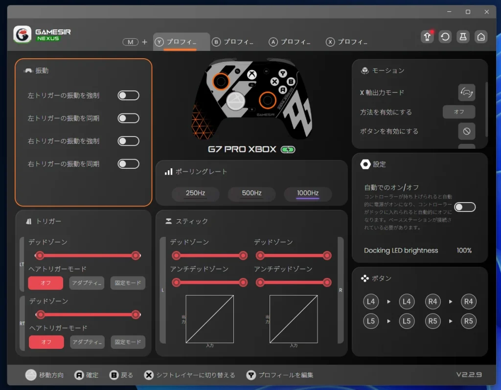 GameSir の公式サイトからダウンロードできる「GameSir Nexus」では、あらゆる設定をカスタマイズすることが可能です。