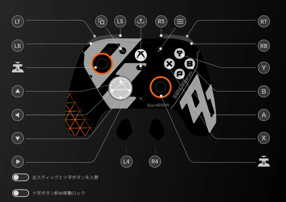 | 追加リマップボタン数 | 4(R4/L4:背面、R5/L5:ミニバンパー) |