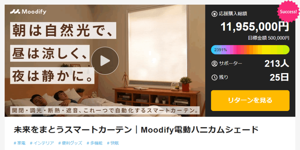 今回はスマートカーテンにカテゴライズされる製品、「Moodify電動ハニカムシェード」をご提供いただきましたのでレビューします。なじみのある言葉で言うなら電動で動くブラインド。