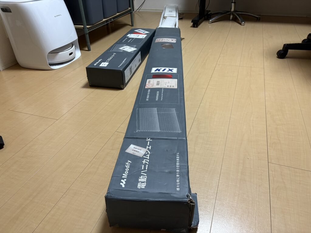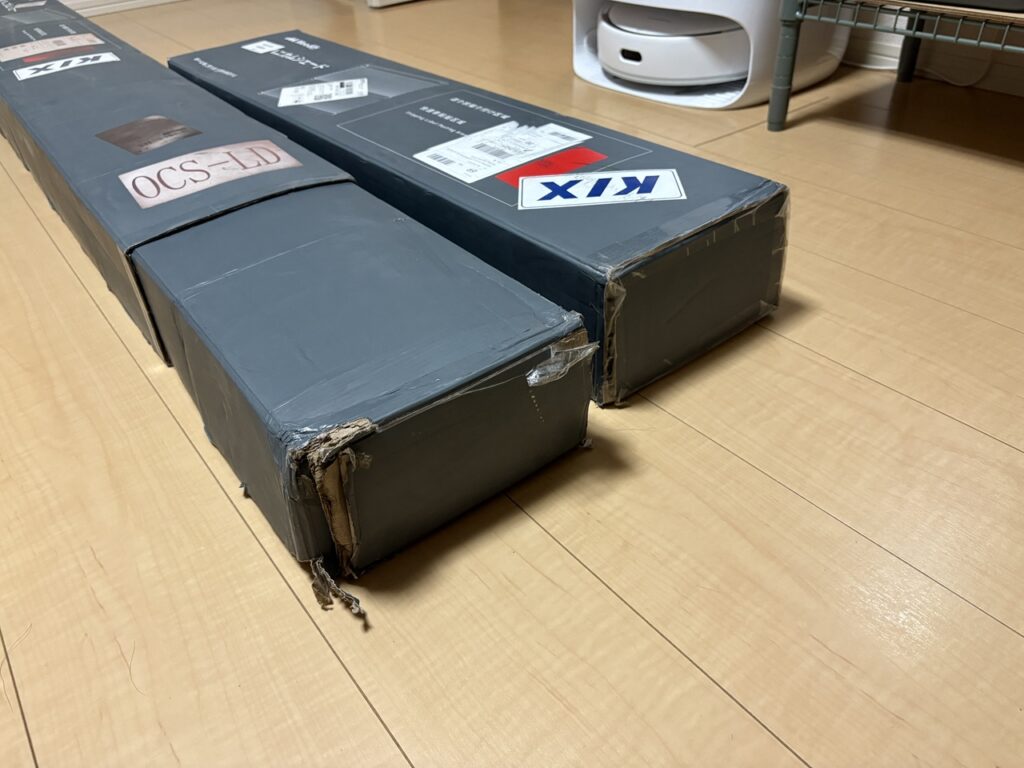 届いたものがこちら。大きいほうが横幅1,740㎜。小さいほうが横幅795㎜。高さはどちらも1,283㎜です。