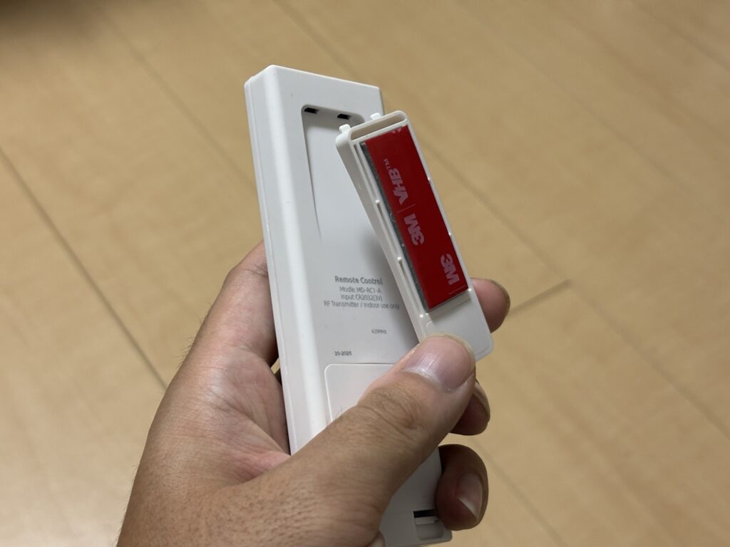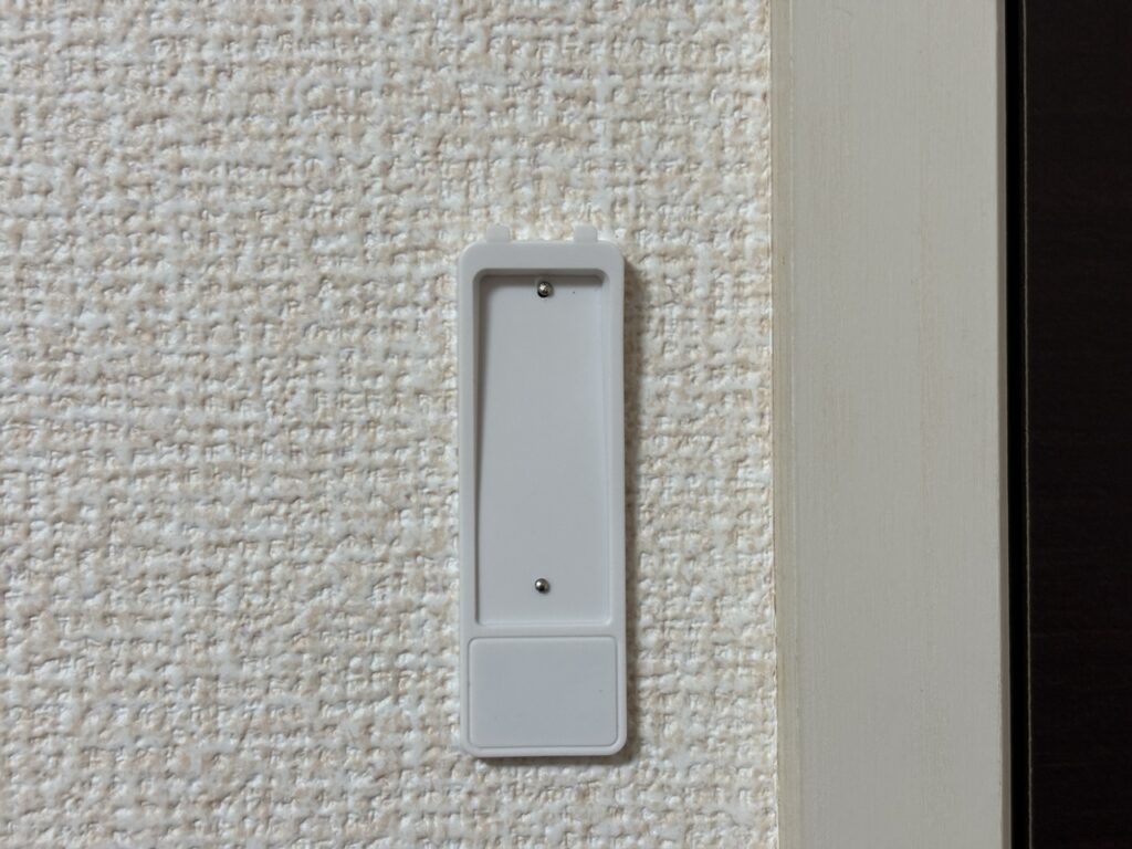 そんな便利なリモコンの設置ですが、マグネットのホルダーで壁掛けができるようになっています。