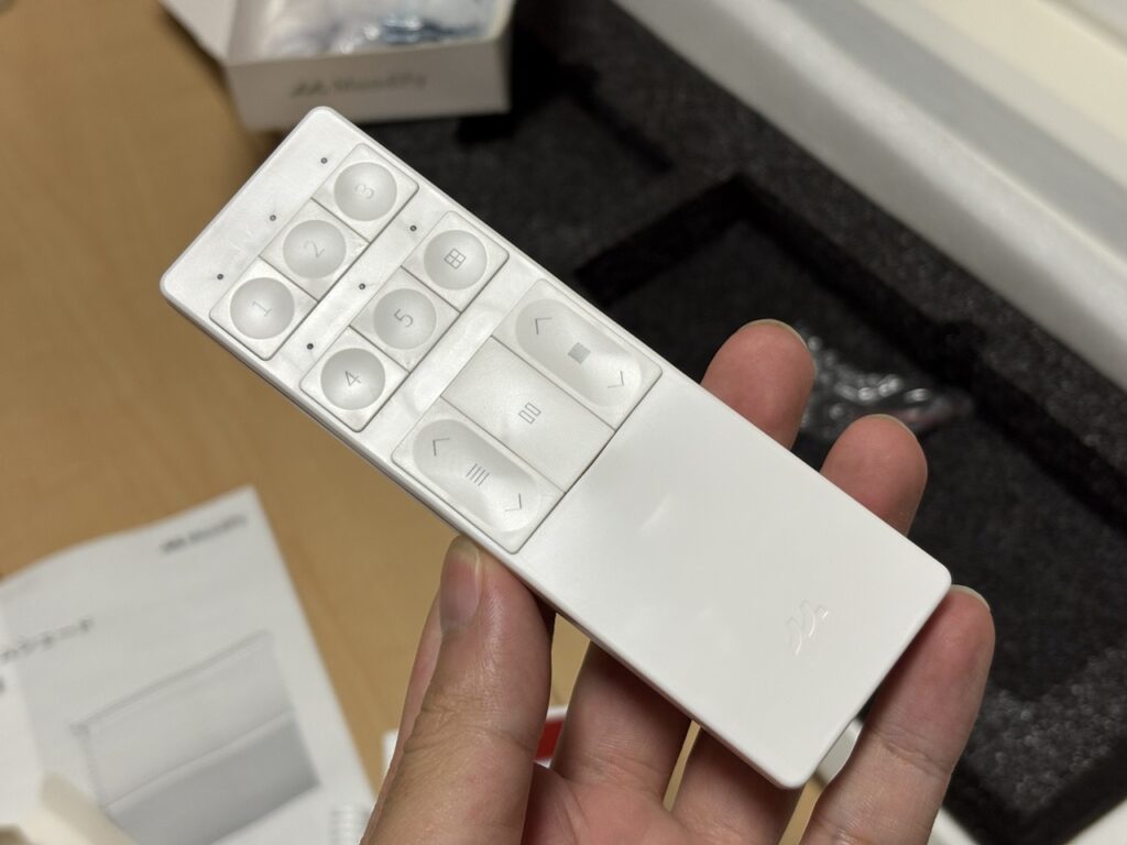 操作はこのリモコン、専用アプリ、音声アシスタント(Google・Alexa)の3通りでコントロールでき、すべての設定を済ませておけばシーンに合わせて選べます。