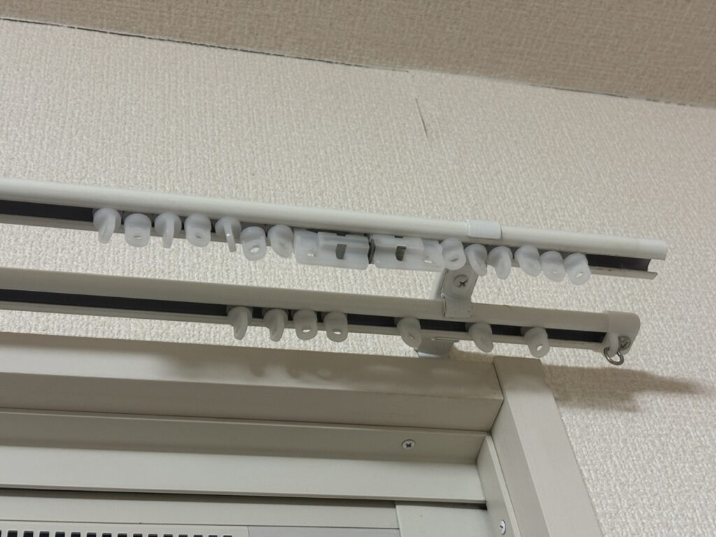 肝心の取り付け方法ですが、カーテンレールのストップカバーとランナー(カーテンをつなげておくリング状のパーツ)をすべて外し、完全にレールだけの状態にします。