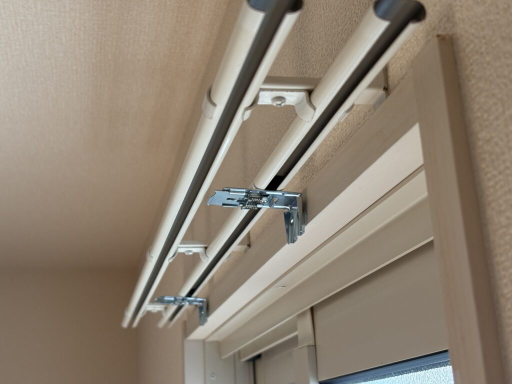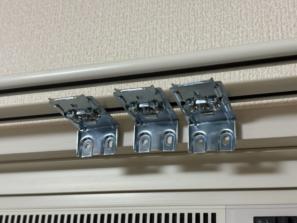 今回お送りいただいたのは「穴あけ式取り付け」。なのですが、穴をあけないでカーテンレールに取り付けする方法で設置することになりました。