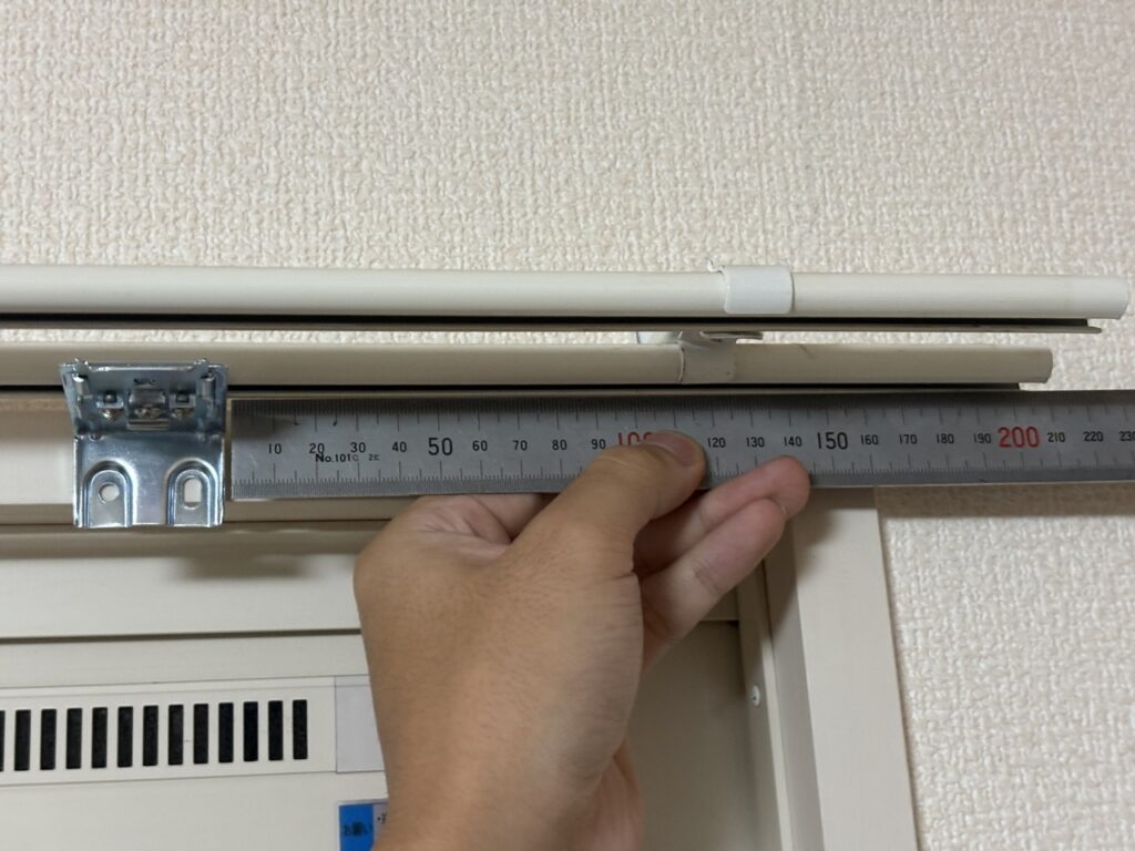 設置間隔は穴あけ式と同じで、端から200㎜地点。シェードの全長が1,500㎜を超える場合は追加で中心にも1つで、合計3つのブラケットを使います。