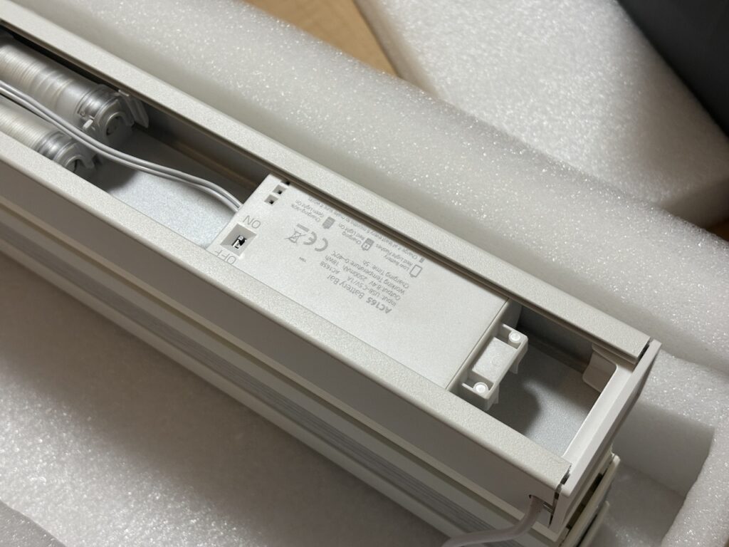 この構造のシェードが減光+遮光で合計200%分と、電導で動くモーター機構、バッテリーなどが15㎝の幅に収まっているわけですから、よく考えられている商品だと思います。