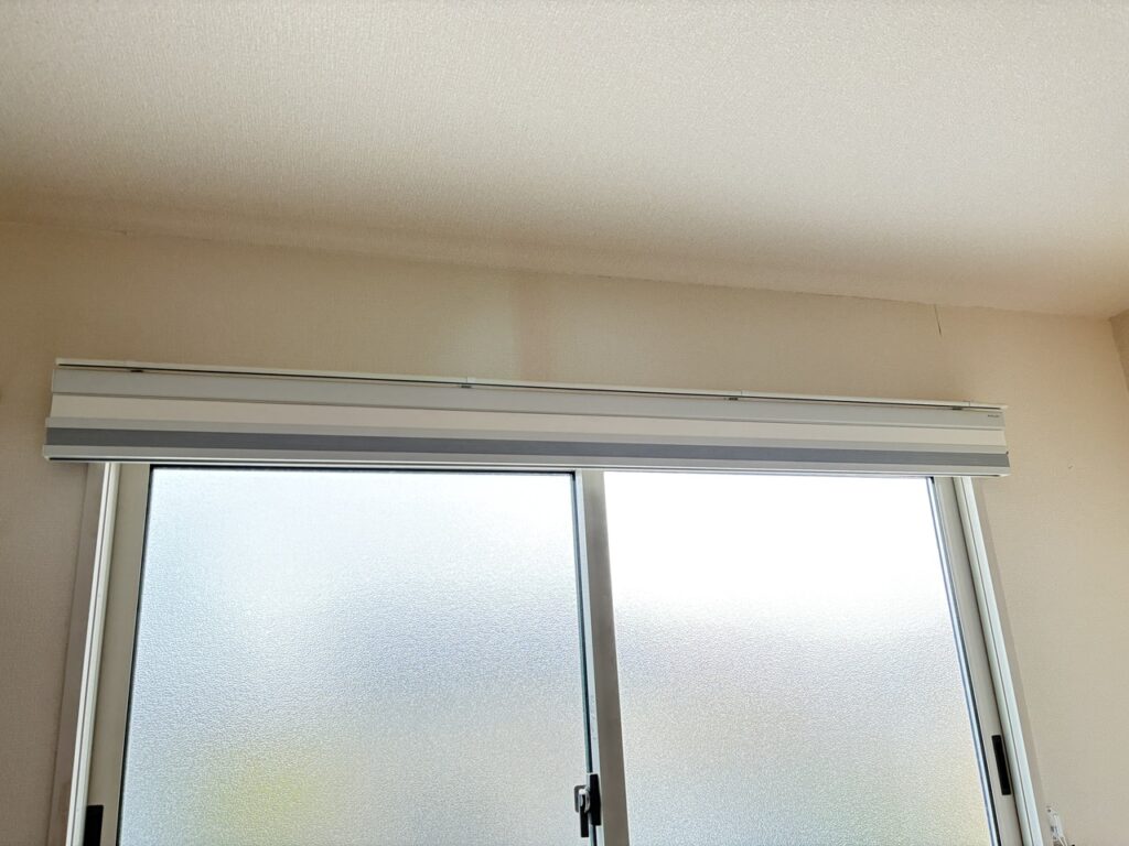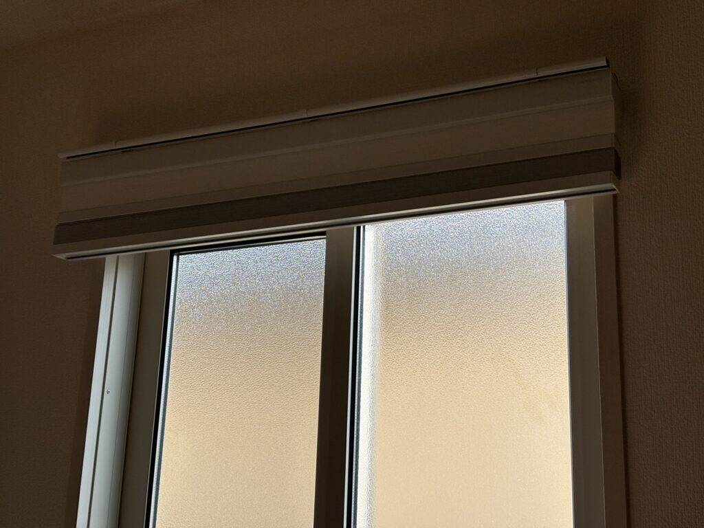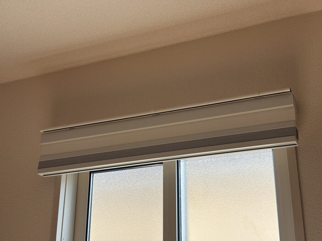 近寄ってみるとわかるように、縦15㎝の幅に100%分の遮光シェードと100%分の減光シェードが格納されています。