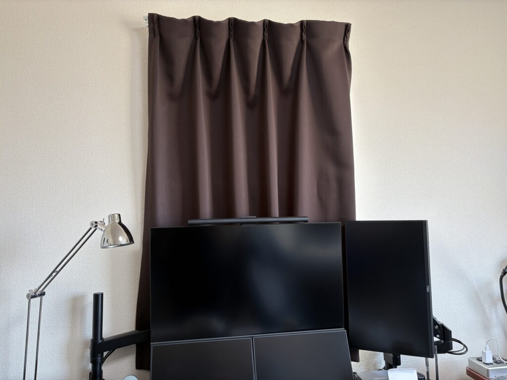 突っ張り方式で取り付けできれば横からの光漏れもカットできるので、これがレール取り付けの限界といったところでしょうか。