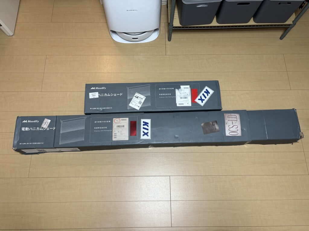 今回は2つの窓用にMoodify電動ハニカムシェードを2個ご提供いただきました。本当は大きいほうだけのつもりでしたが複数の窓でもOKということで、お言葉に甘えてしまいました。