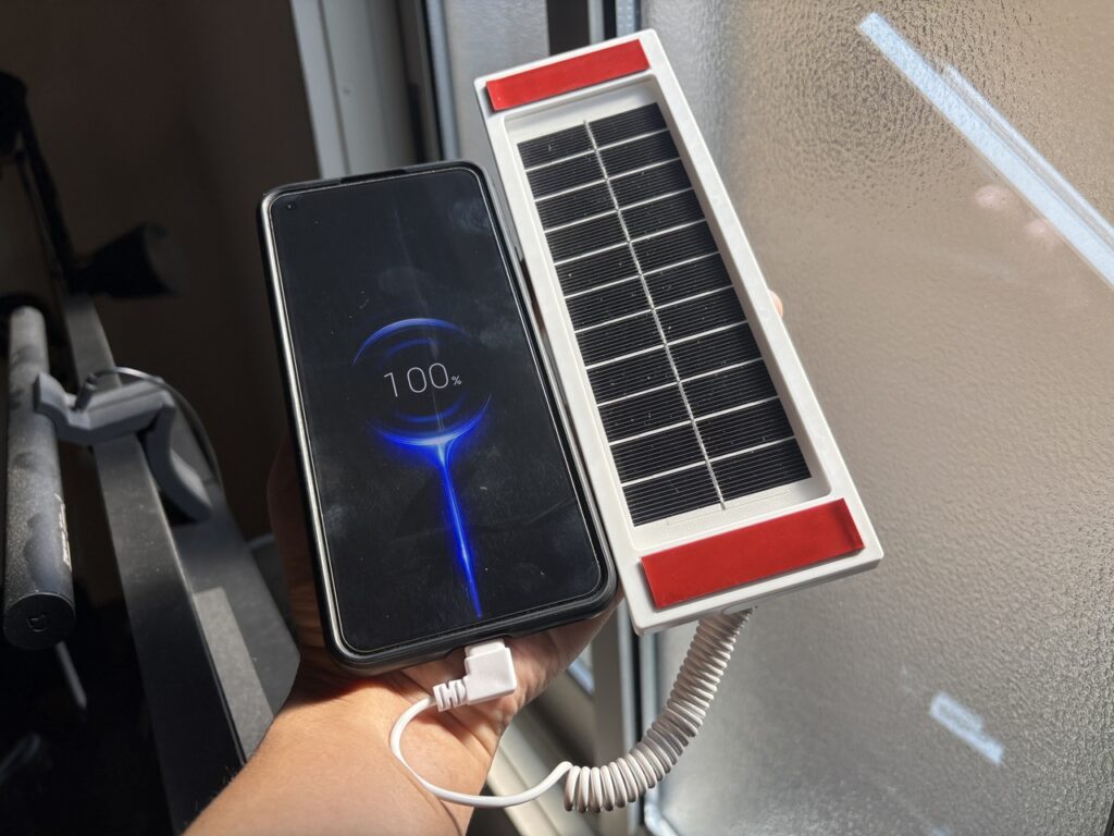 ケーブルがType-Cだったのでスマホにつなげてみたところ、普通に窓越しの太陽光で充電できるではありませんか。もちろん充電は遅いと思いますが、これ災害用に欲しいですよね。笑