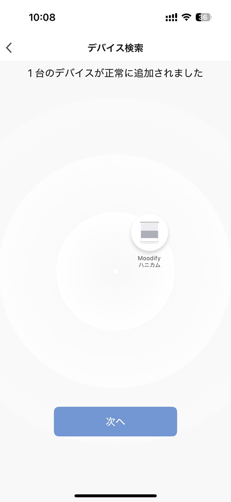 「Moodify(アプリ)」→「Moodifyハブ」→「Moodify電動ハニカムシェード」の同線で接続します。そこまで難しい設定はないので詳細な説明は省きますが、気を付けるポイントとしてはWi-Fiの接続が2.4Gのみの対応でした。