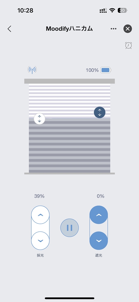 これが操作画面なわけですが、リモコンより直感的にシェードを制御できます。ものすごく使いやすい。