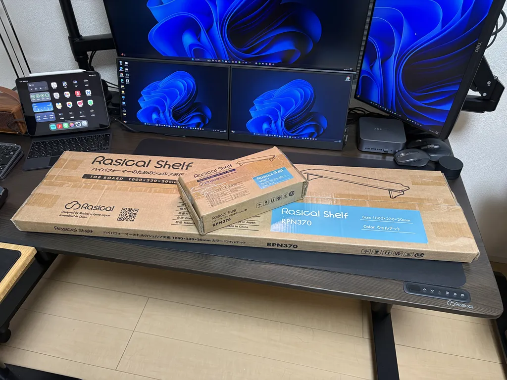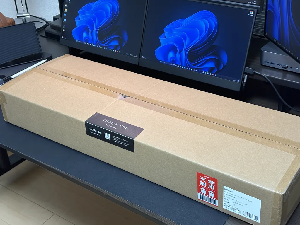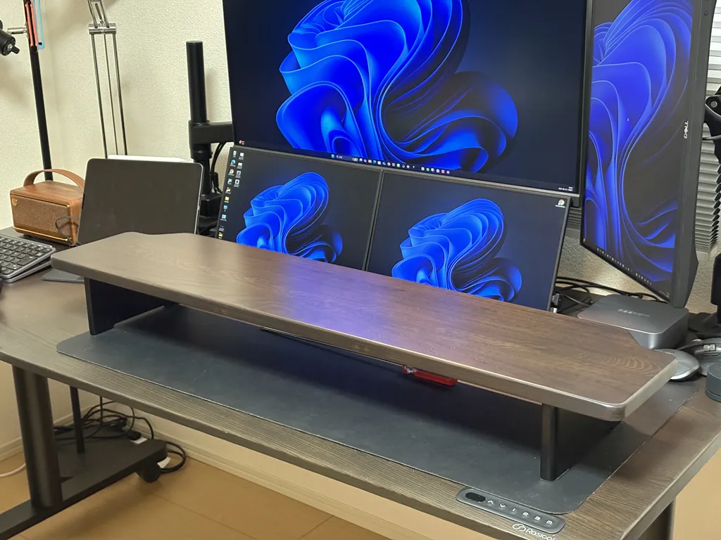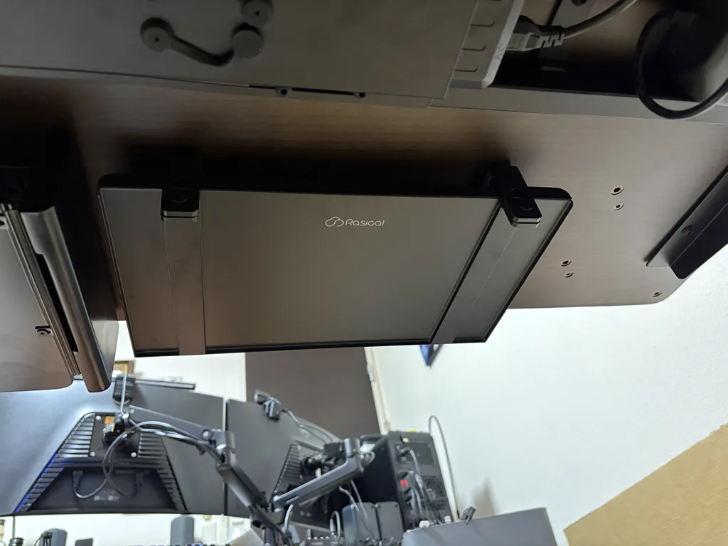 Rasical Desk を導入した方の多くがセットで購入するモジュールかとは思います。ただ、僕はモバイルモニターを2枚直置きしている構成のデスクなので、お話はいただいていたもののしばらく提供していただくか迷っていました。