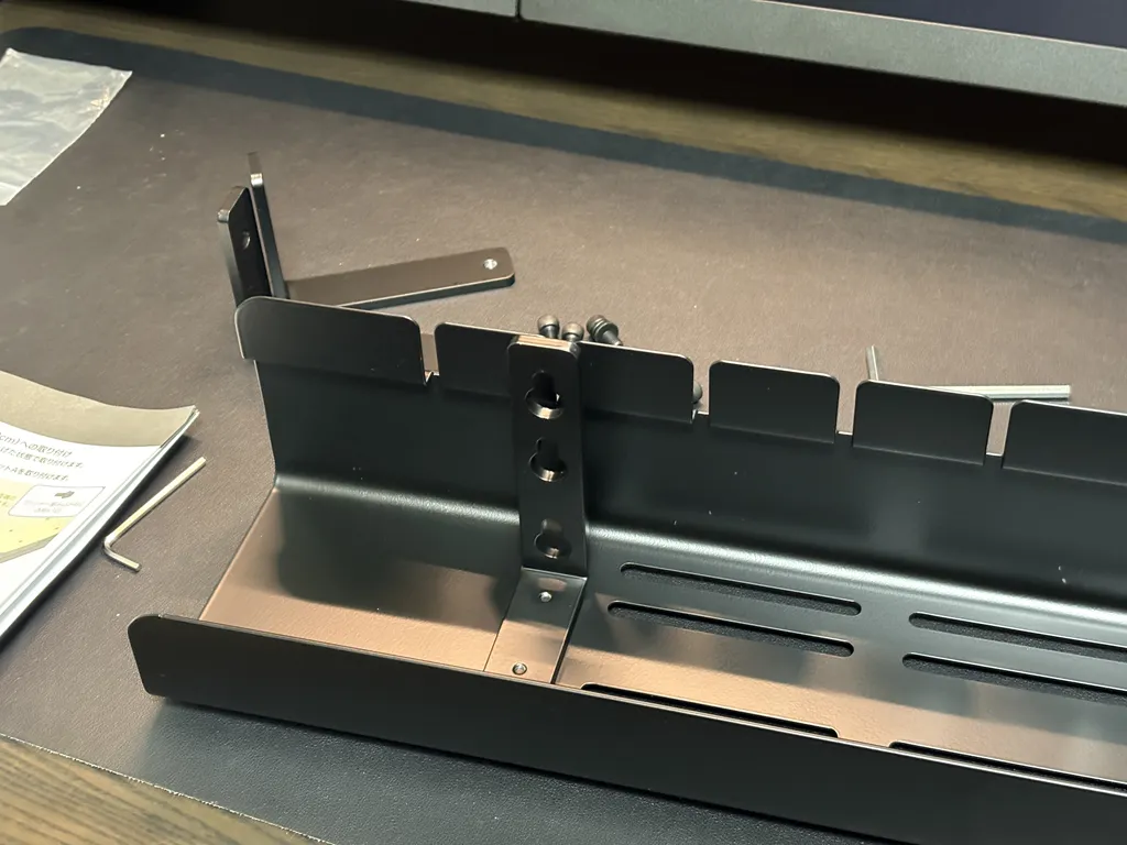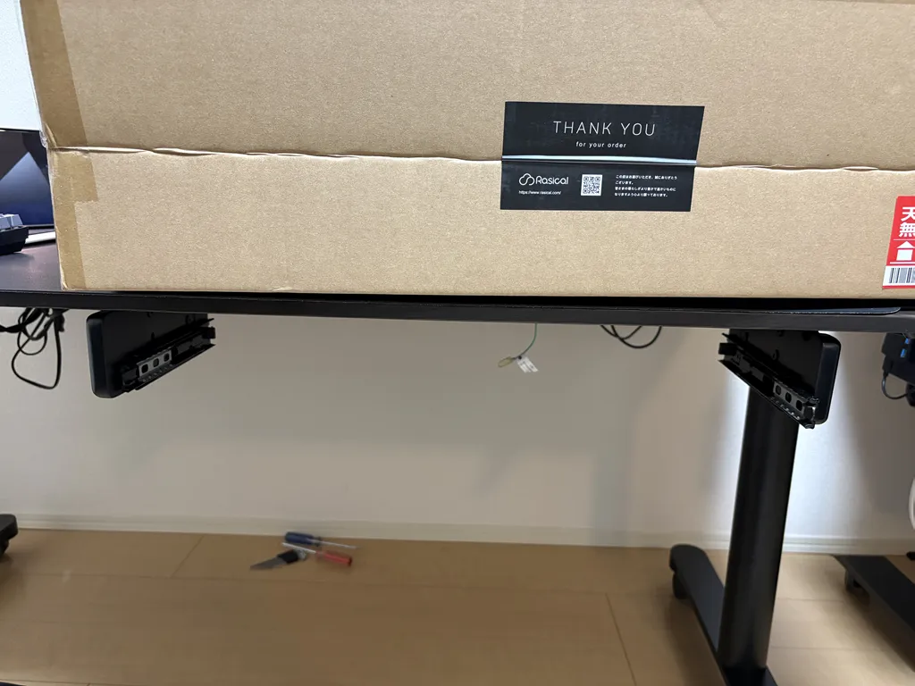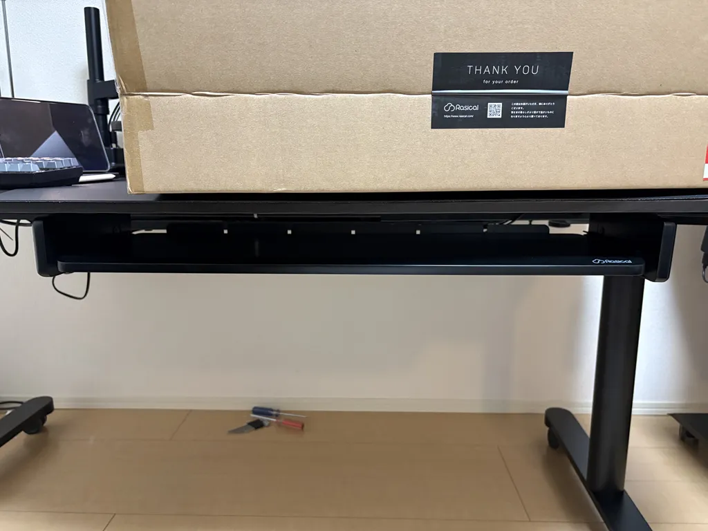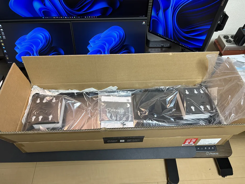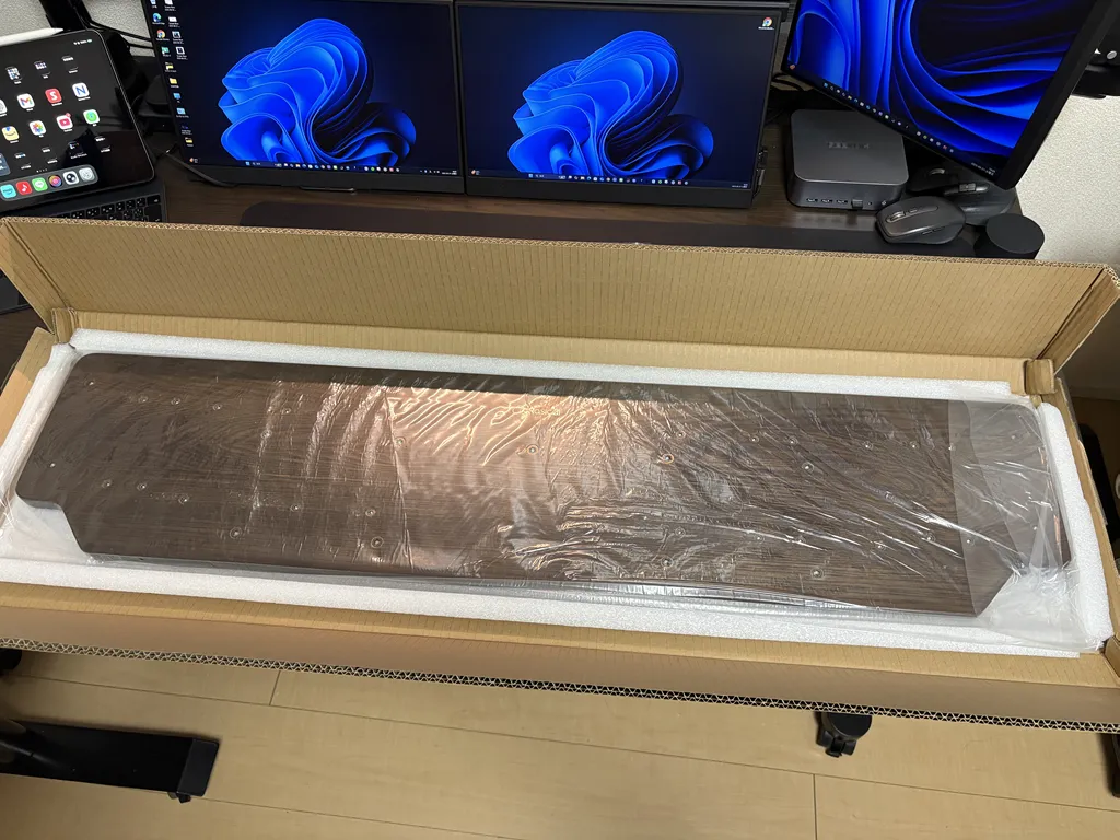 Rasical Desk を導入した方の多くがセットで購入するモジュールかとは思います。ただ、僕はモバイルモニターを2枚直置きしている構成のデスクなので、お話はいただいていたもののしばらく提供していただくか迷っていました。
