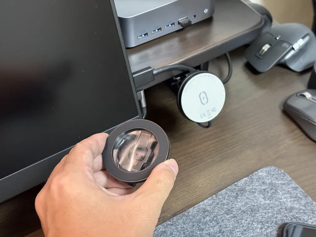 もちろんモバイルモニターはマグネット非対応なので、「マステ(下地)→MagSafeリング→マステ(脱落防止用)」の順で取り付けてMagSafe対応させています。
