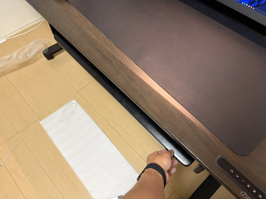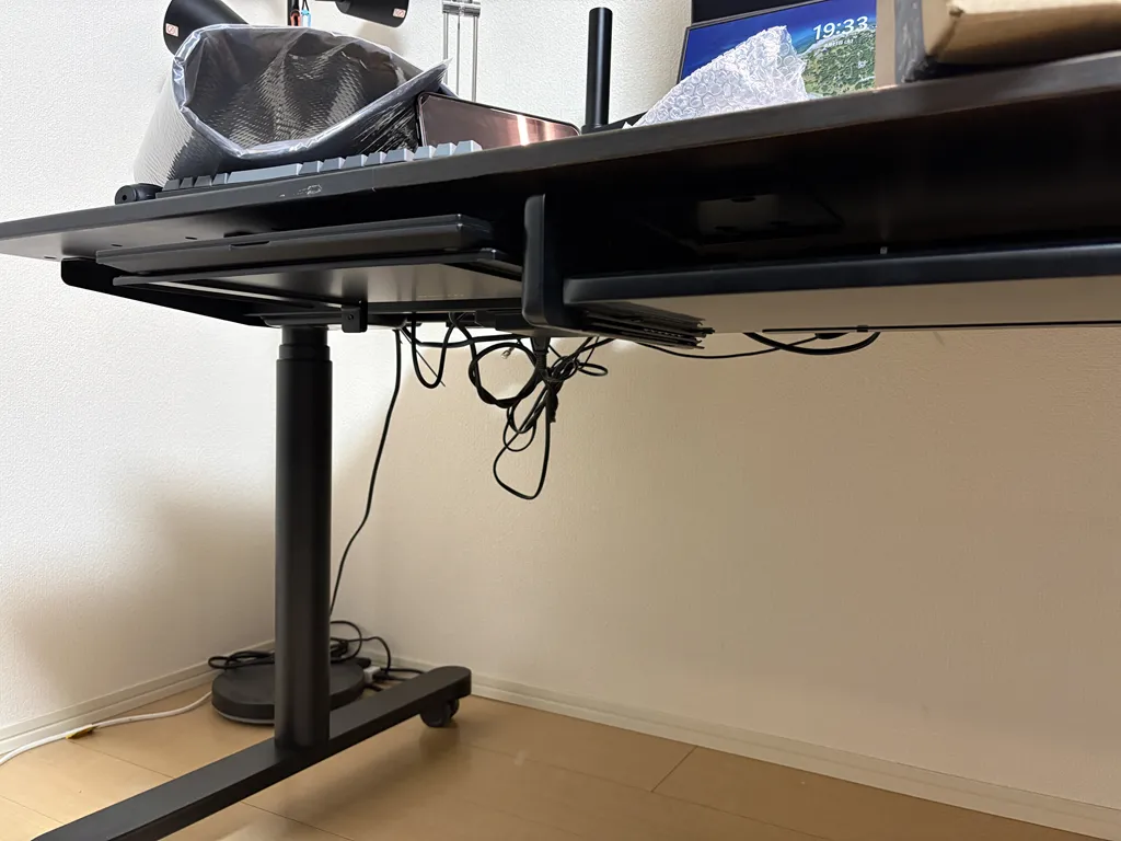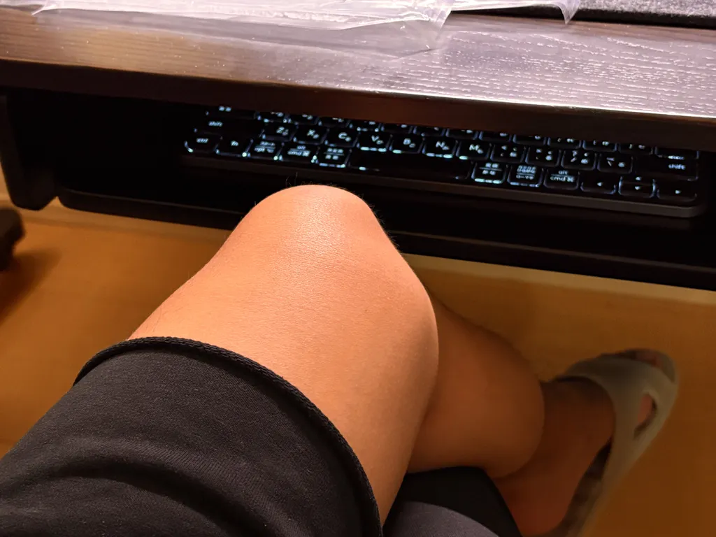 そしてデスクしたのスペースがなくなったことにより、座った状態で足を組むことができなくなります。これはちょっと辛いですが、足を組み続けるのは姿勢を崩す原因にもなるみたいなので、これはこれでいいのかも。