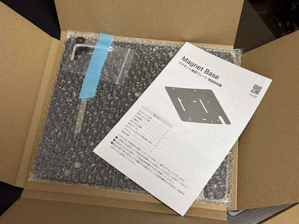 デスクやシェルフの裏にマグネットをくっつけられるようにするモジュール「Magnet Base for Desk / Shelf(マグネットベース)」も使いたいので、このタイミングで取り付けを行います。