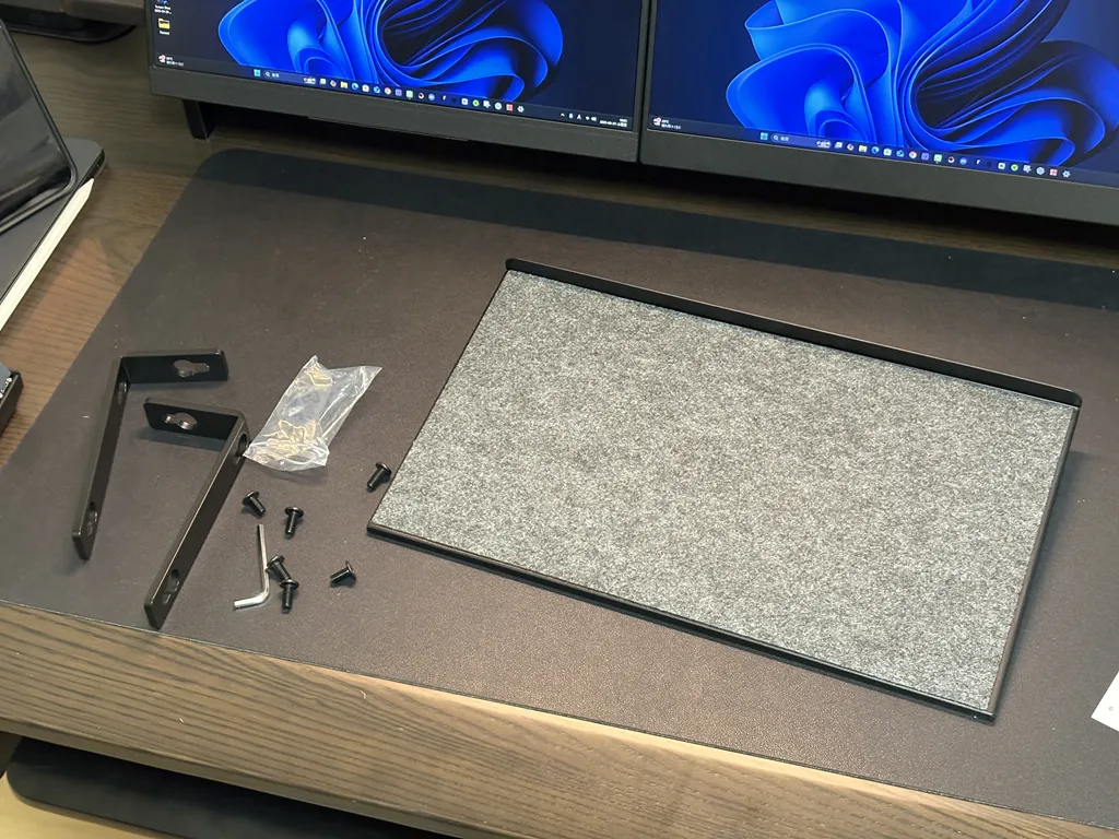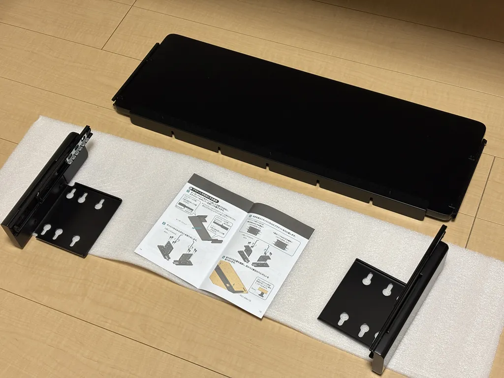 名称はさておき、デスク下に取り付けることでキーボードやマウスを置いておける板を拡張できるモジュールです。