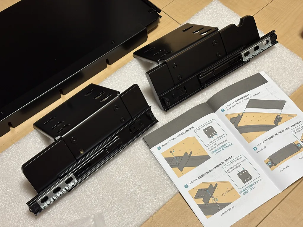 板部分と設置金具(スライドレール)を分離して取り付けを行います。