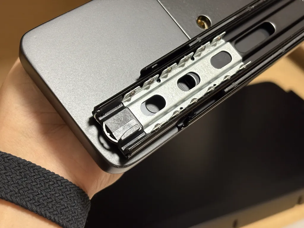 ちょっと伝わりにくいのですが、スライドレール部分は潤滑グリスでベタベタです。