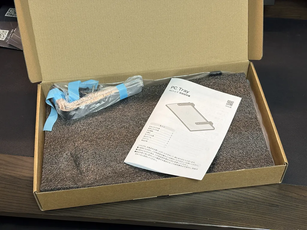次はノートパソコンや雑誌、書類などをデスク下、シェルフ下のしまっておけるトレイです。