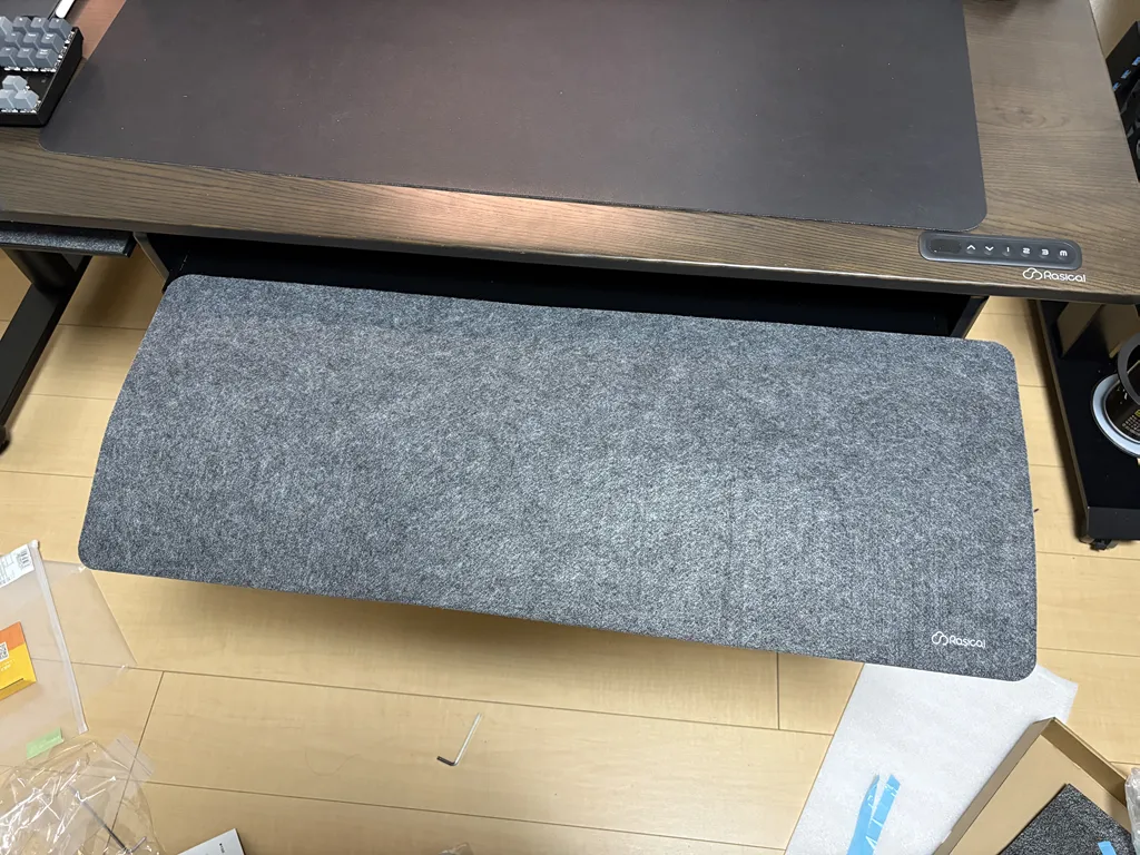 ちなみにキーボードトレイに乗せるとだいぶ大きすぎる。質感がいいだけにキーボードトレイ専用サイズも発売して欲しいところ。マウスの滑りなども全く問題なかったので、愛用予定。