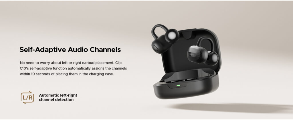 面白いのが、Clip C10はイヤホンの左右の区別がありません。クリップ型のイヤホンはどれも左右が同じような形で見分けがつきにくいのが難点だったりしますが、そこを逆手に取った面白い機能です。