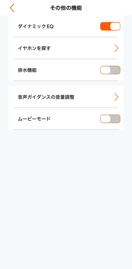 こんな理由から、基本ダイナミックEQをON、イコライザを使わないという設定にしているため、このアプリを使わない運用になってしまいました。ちなみに公式スペックでは空間オーディオ対応となっているのですが、空間オーディオという項目はありませんでした。