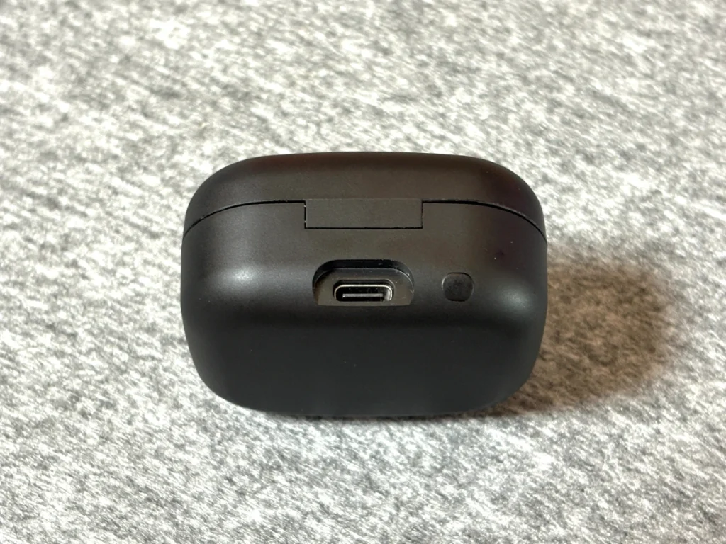 背面に充電ポートとペアリングボタン。最初ボタンが無いモデルかと思っていたけど、こんなところにあった。